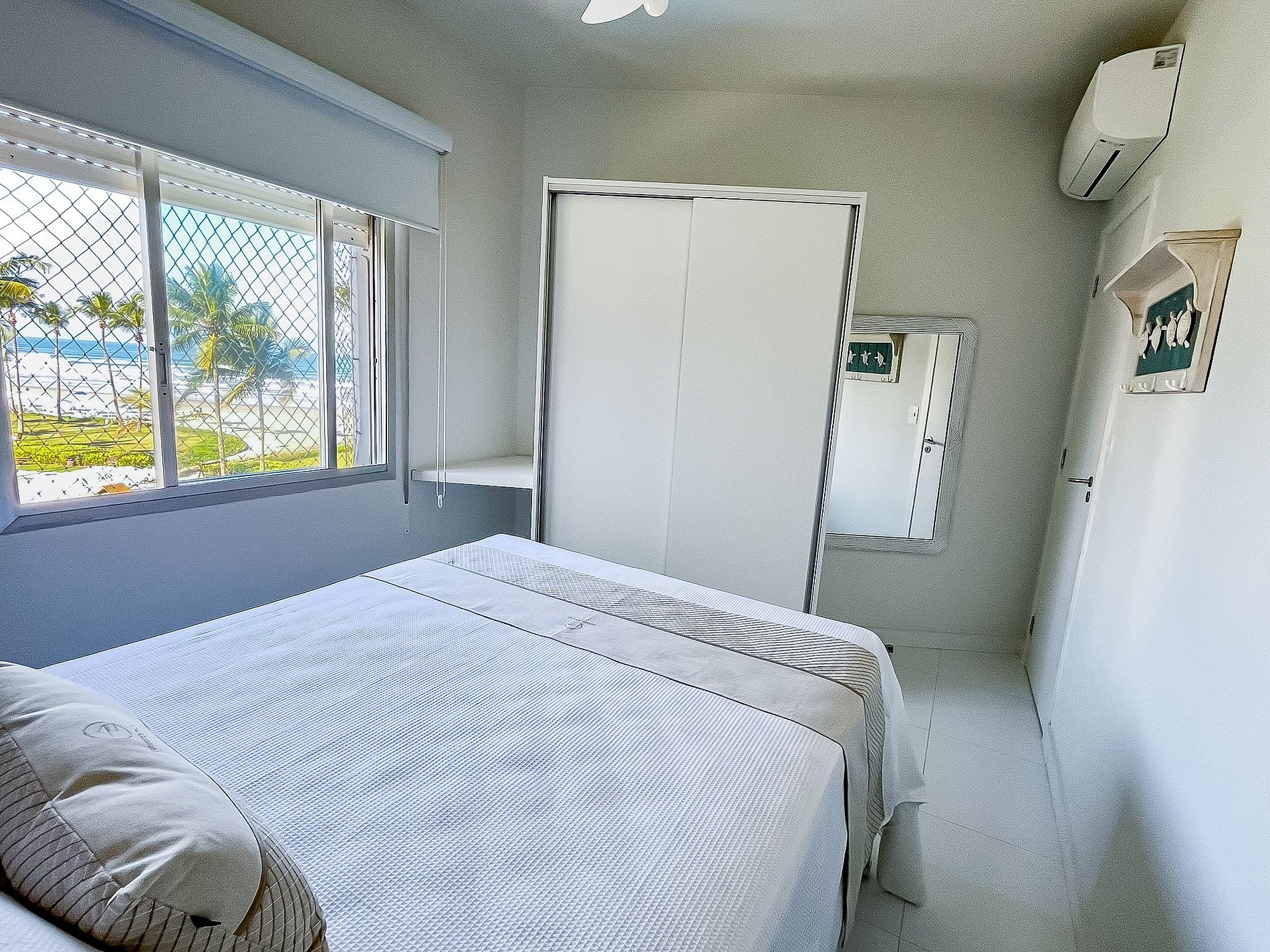 DIFERENCIAIS DA PROPRIEDADE * Varanda com vista maravilhosa do mar * Rede de proteção na varanda e janelas * Ar-condicionado em todos os ambientes * Móveis e colchões novos * Smart TV * Cozinha equipada completa * Mesa Posta: Louças | taças | acessórios * Cafeteiras Dolce Gusto e Elétrica * Maquina Lava e Seca * Secador de cabelo * WIFI de qualidade em todos os ambientes * 1 vaga de garagem coberta * Fechadura Digital