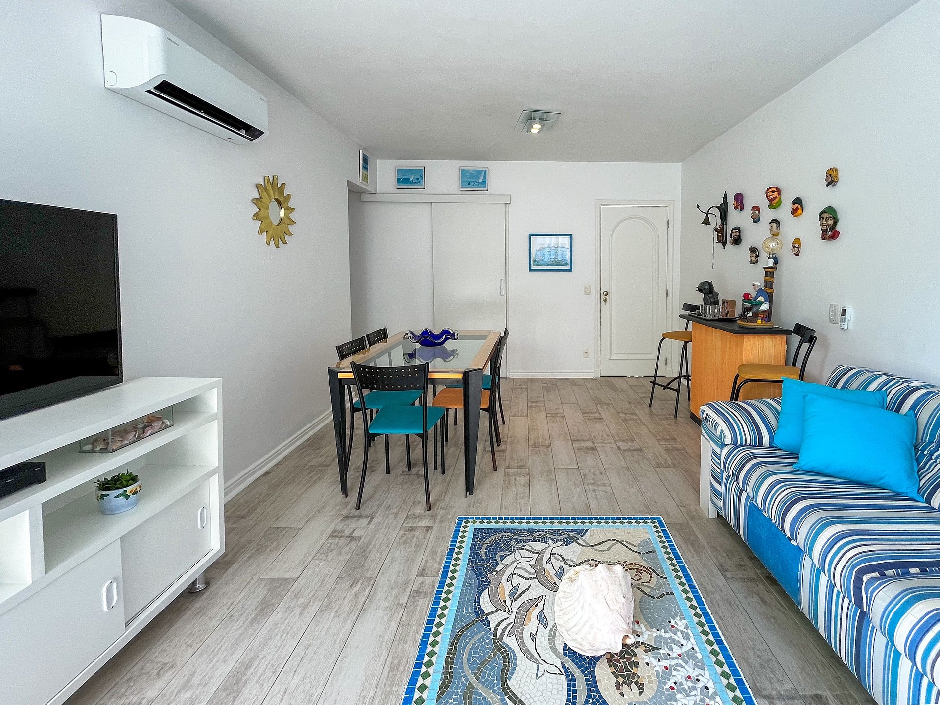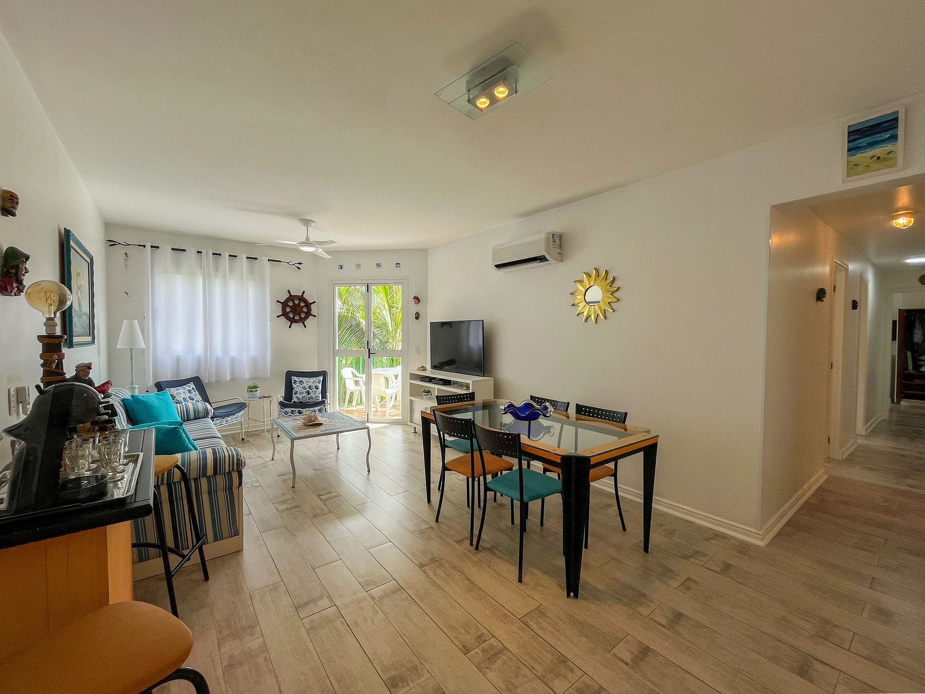 O apartamento é muito aconchegante, com decoração leve em cada detalhe. Todo esse capricho traz muito personalidade aos seus ambientes integrados, favorecendo a convivência e interação de todos. Uma energia incrível para seus momentos de descanso. O Sol da manhã ilumina a charmosa varanda e o canto dos pássaros convidam para um belo café da manhã.