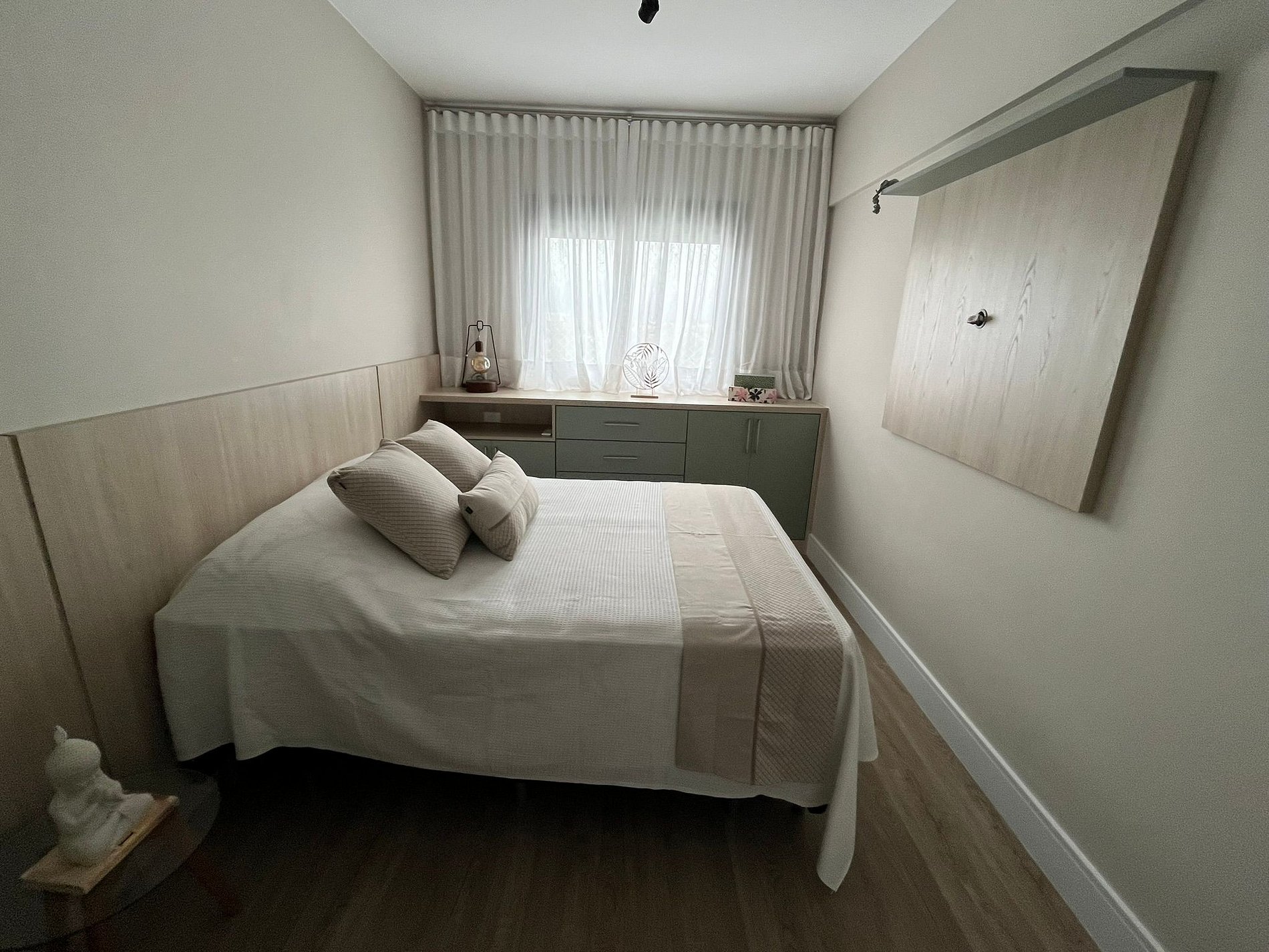 O apartamento é novo e muito aconchegante, com decoração leve e elegante em cada detalhe. Todo esse capricho traz muito charme aos seus ambientes integrados, favorecendo a convivência e interação de todos. Uma energia incrível para seus momentos de descanso. O Sol da manhã ilumina a charmosa varanda com maravilhosa vista para o mar e a serra e te convidam para um belo café da manhã junto a natureza.