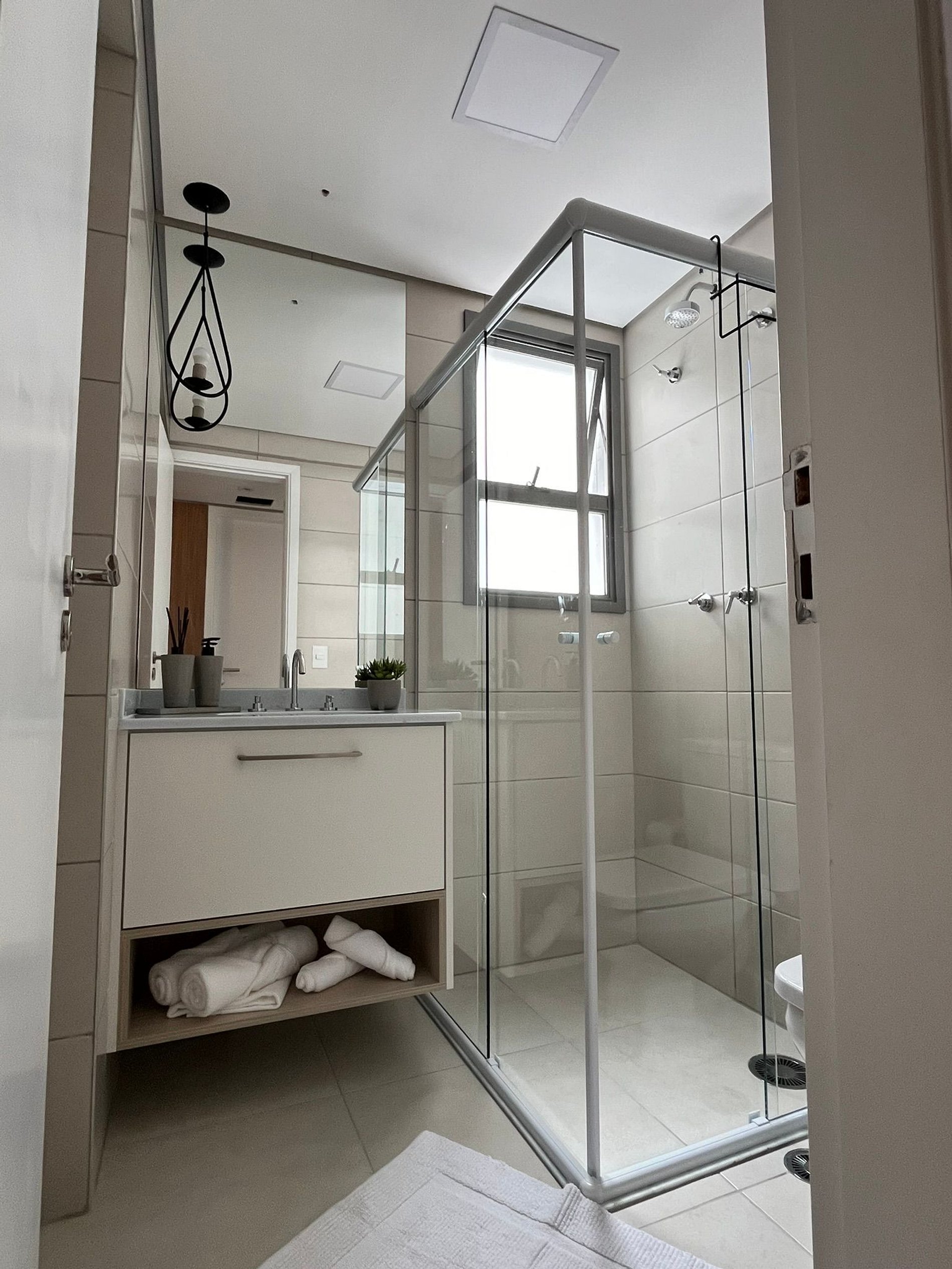 - Banheiro Limpo e Moderno, desfrute de um banho revigorante com toalhas macias à sua disposição