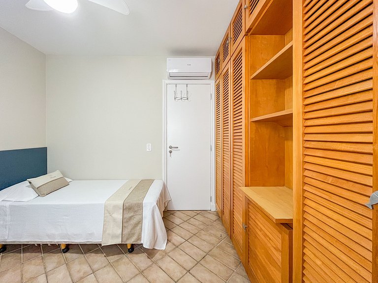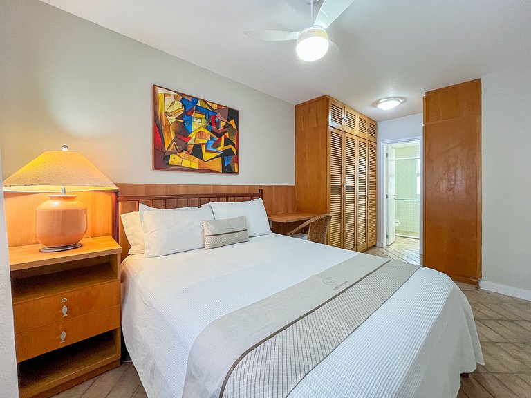 Este apartamento beira mar no Módulo 3 da Riviera de São Lourenço fica a apenas 50m da praia e 600m do shopping.