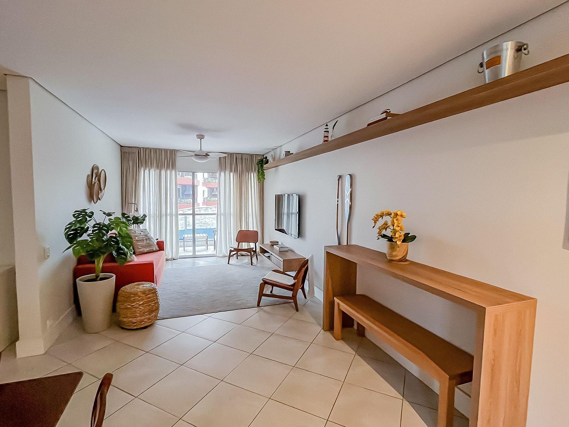 Situado a poucos passos da areia, com acesso exclusivo à praia, esta hospedagem oferece uma combinação perfeita de conforto, elegância e praticidade para vc e sua família. Com decoração leve e elegante em cada detalhe, todo esse capricho traz muito charme aos seus ambientes integrados, favorecendo a convivência e interação de todos. Uma energia incrível para seus momentos de descanso.