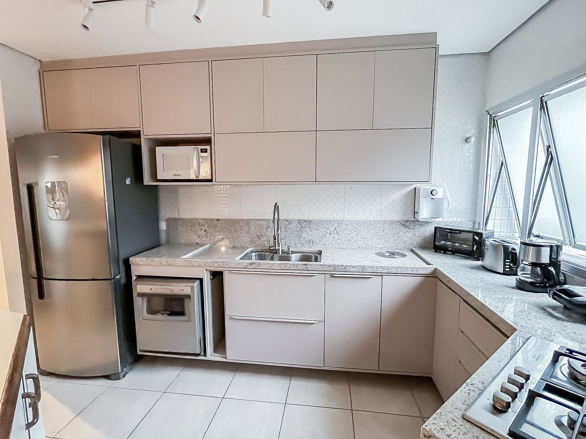 - Cozinha completa (liquidificador, batedeira, torradeira, cafeteira, filtro de água, etc.)