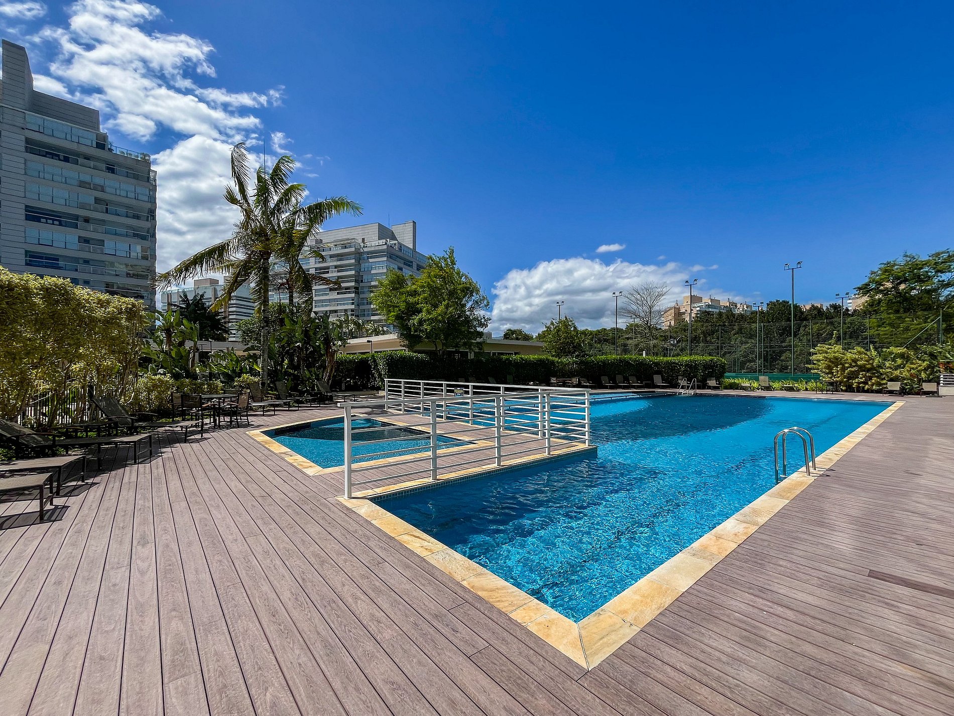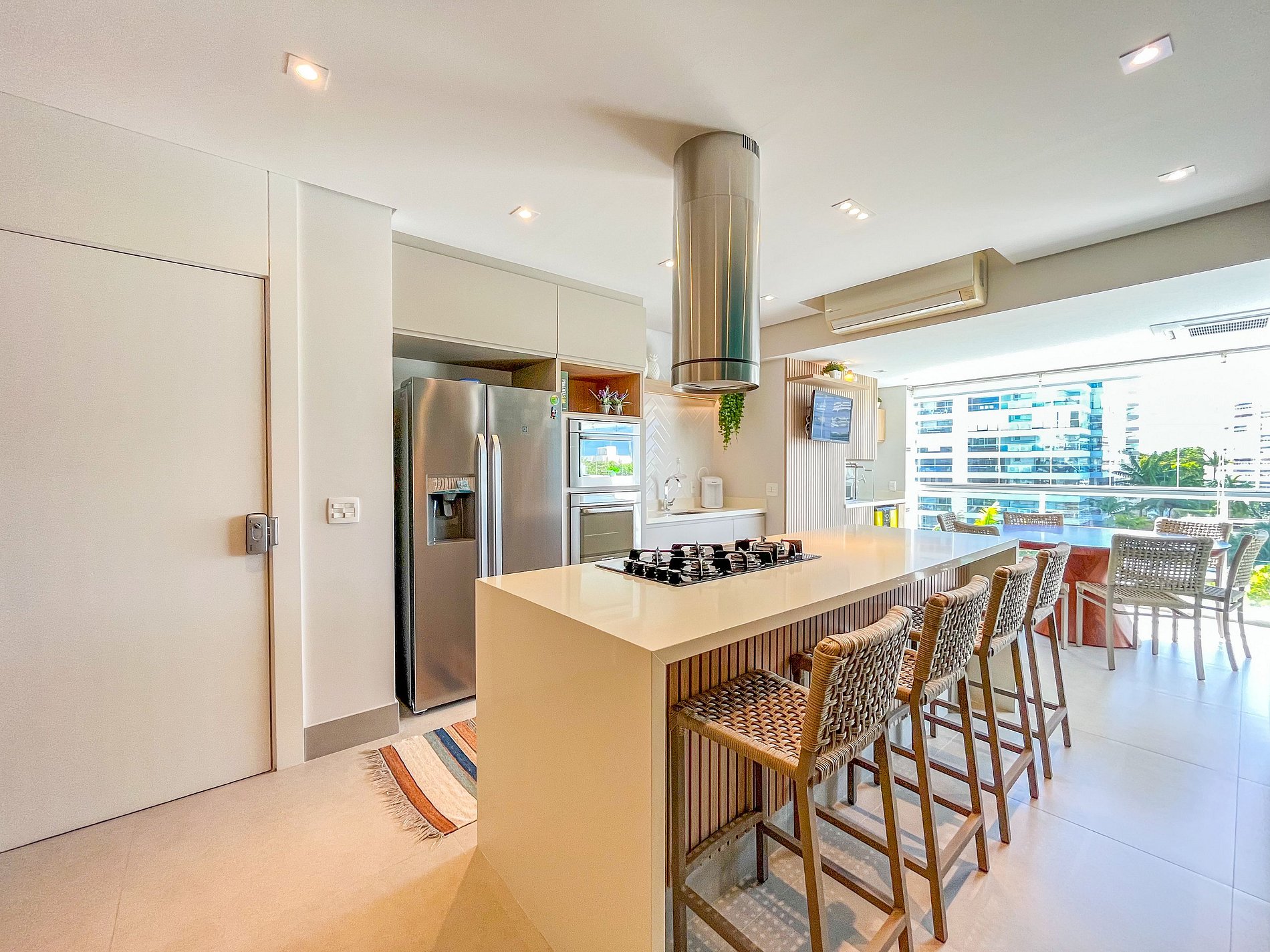 Com decoração leve, moderna e cheia de charme, este apartamento no Módulo 8 da Riviera de São Lourenço fica a apenas 70 m da praia e 4 km do shopping. São 3 dormitórios (2 suítes) e uma ampla varanda gourmet com churrasqueira e vista incrível. Localizado no All Time Family Club, um dos condomínios mais requisitados da região, que oferece lazer completo padrão resort, com piscinas, spa, academia, quadras, restaurante, brinquedoteca e serviço de praia.