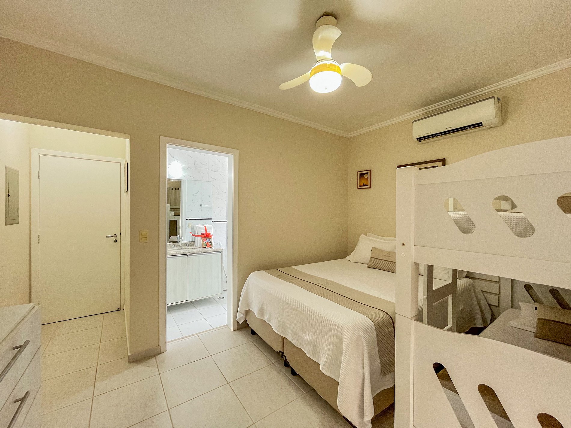 - Suíte 1: 1 cama de casal e 1 beliche