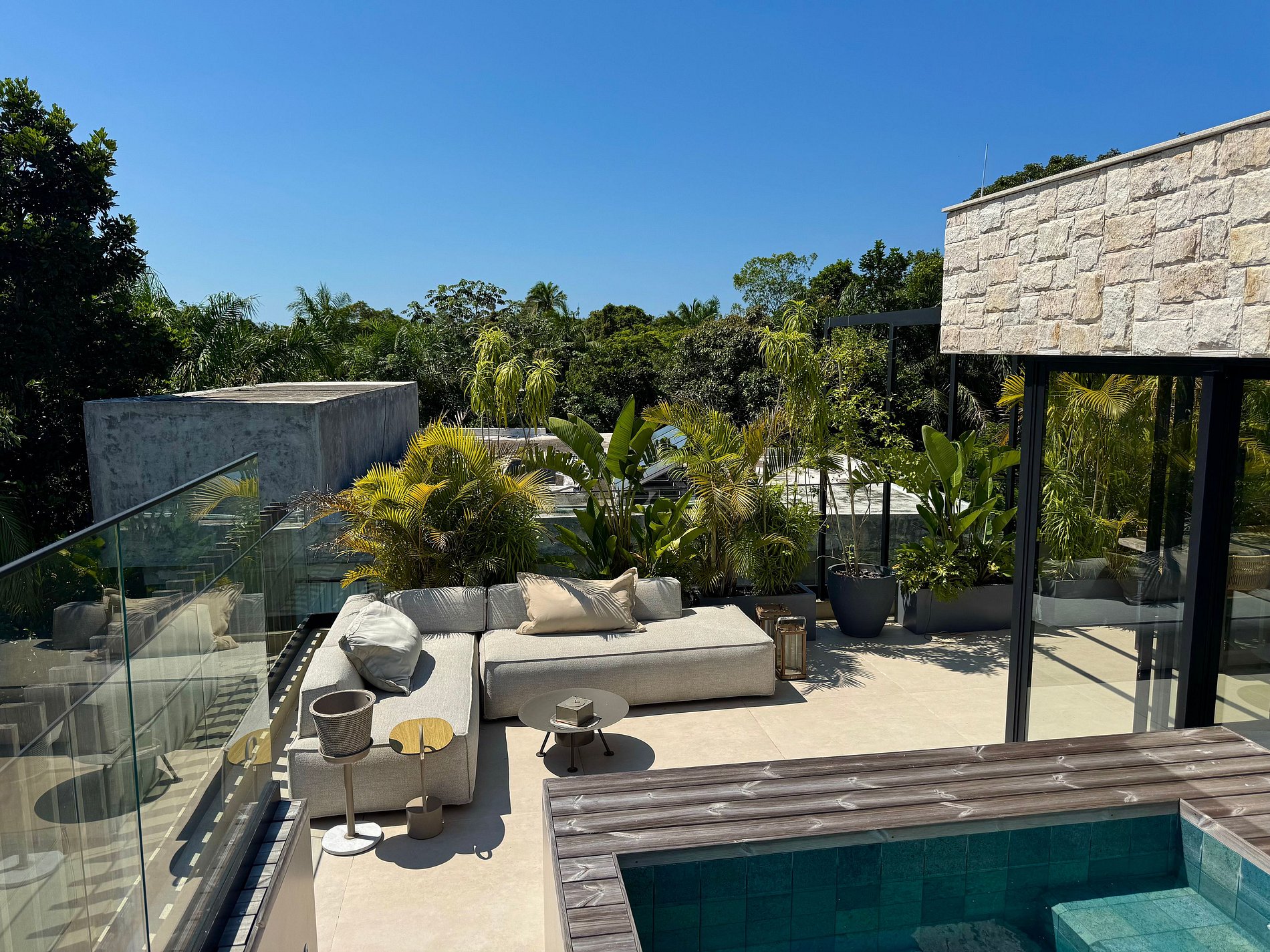 COBERTURA – Bem-estar em meio à natureza. A cobertura reúne espaços sofisticados e integrados, com jardins sensoriais, ofurô e uma suíte adicional, criando o ambiente perfeito para relaxar e contemplar.