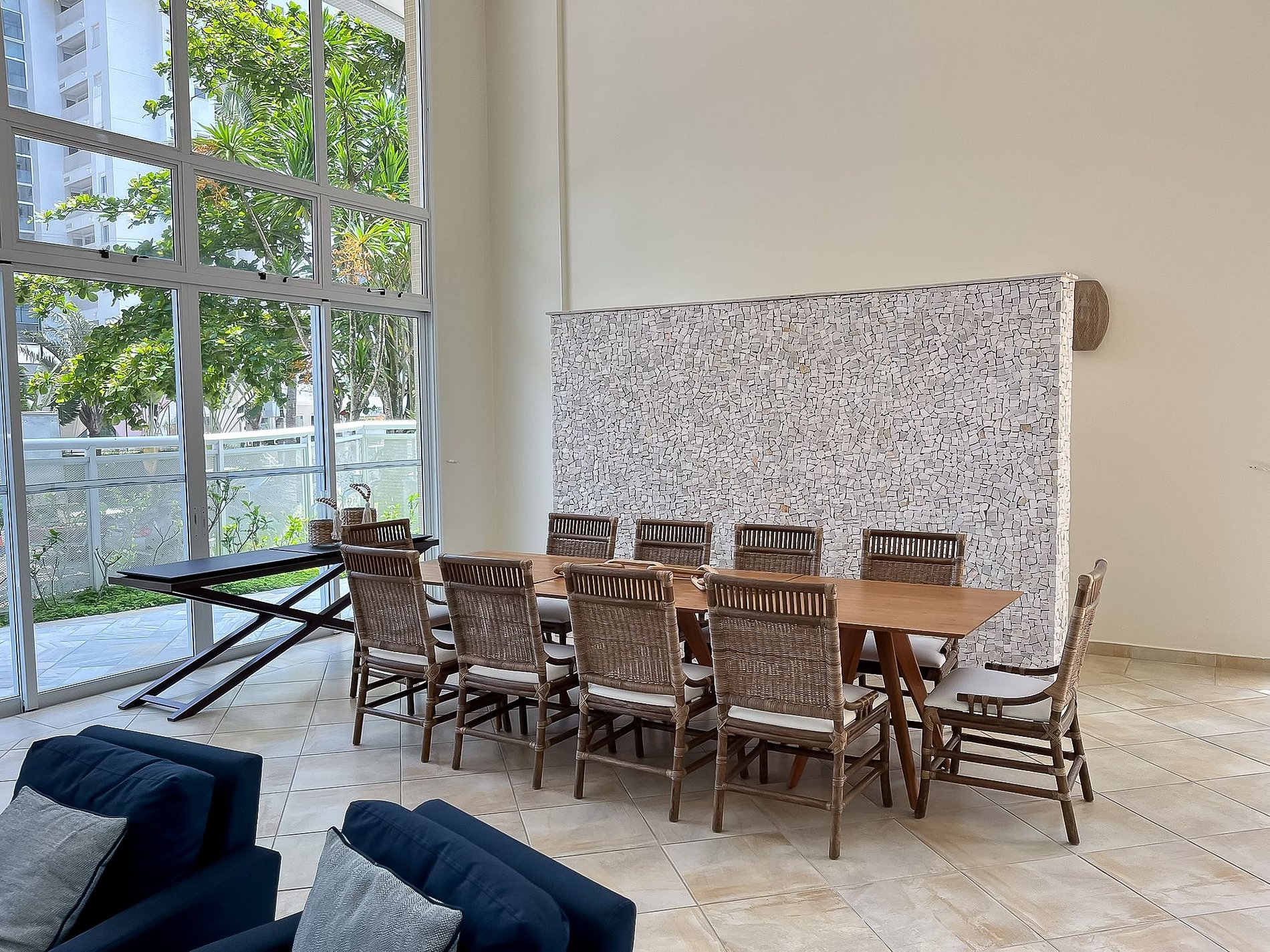 Apartamento moderno e completo no módulo 8, com uma vista deslumbrante do mar, oferece um design sofisticado, com móveis e marcenaria de alto padrão. A poucos metros da praia, você poderá desfrutar do sol e do mar em um ambiente tranquilo e elegante. Com 3 dormitórios (2suítes), cozinha completa e super equipada, sala aconchegante e uma maravilhosa varanda, é o lugar perfeito para relaxar e criar memórias inesquecíveis.