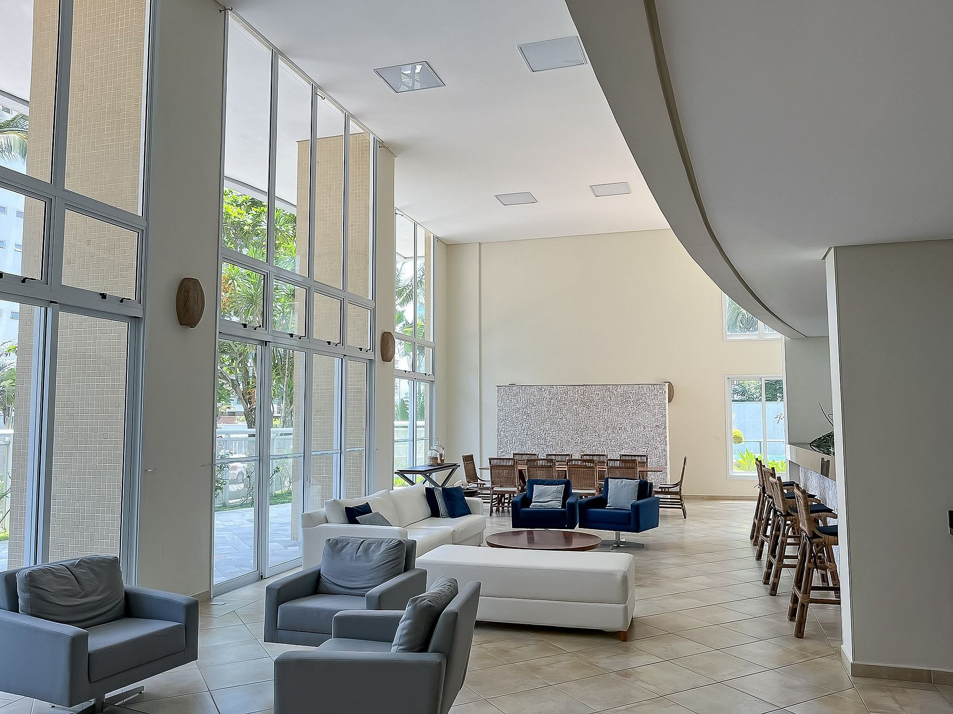 Apartamento moderno e completo no módulo 8, com uma vista deslumbrante do mar, oferece um design sofisticado, com móveis e marcenaria de alto padrão. A poucos metros da praia, você poderá desfrutar do sol e do mar em um ambiente tranquilo e elegante. Com 3 dormitórios (2suítes), cozinha completa e super equipada, sala aconchegante e uma maravilhosa varanda, é o lugar perfeito para relaxar e criar memórias inesquecíveis.